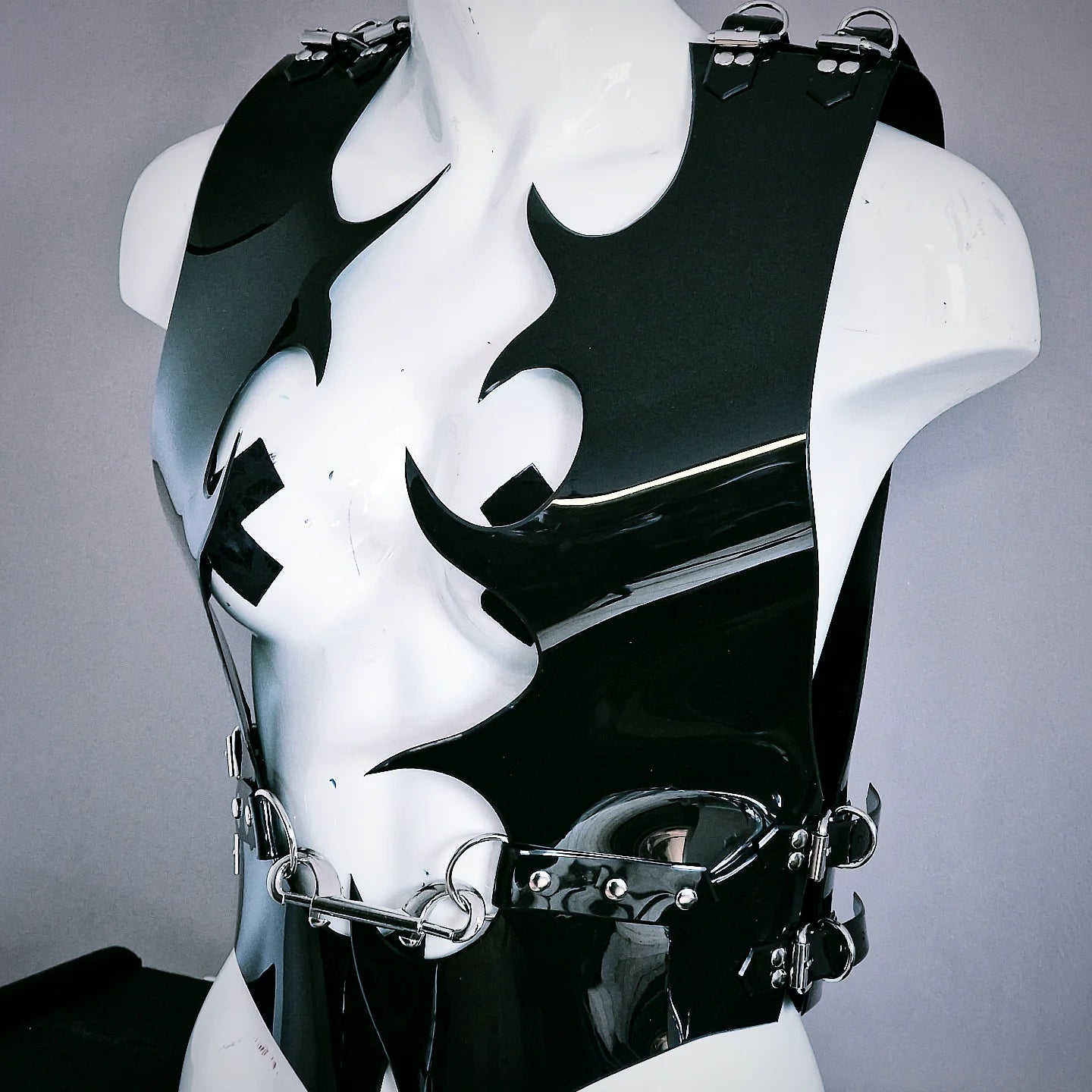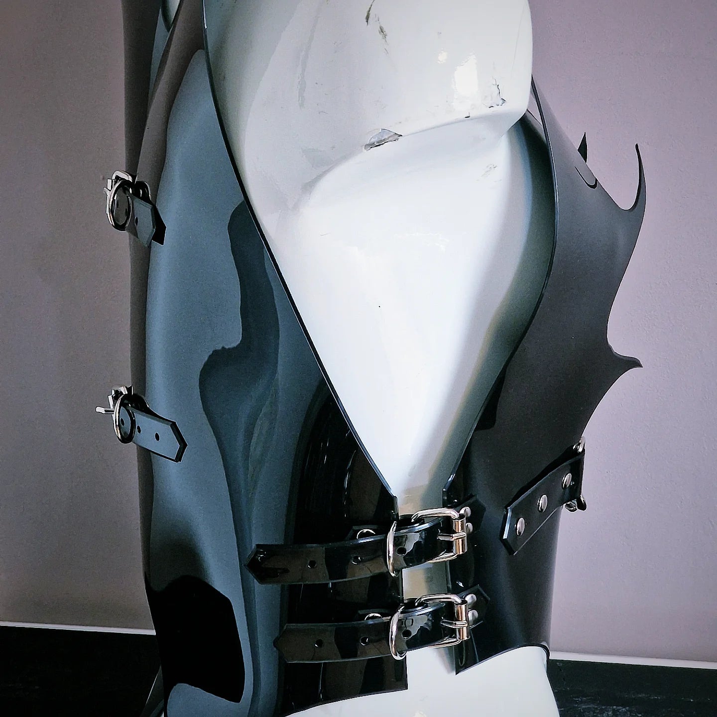 Expertly crafted with ten adjustable buckles and d rings, the Devour Waistcoat adds a touch of edgy style to any outfit. Its spiky black shiny finish exudes confidence and individuality. Perfect for those who want to make a statement without sacrificing comfort.