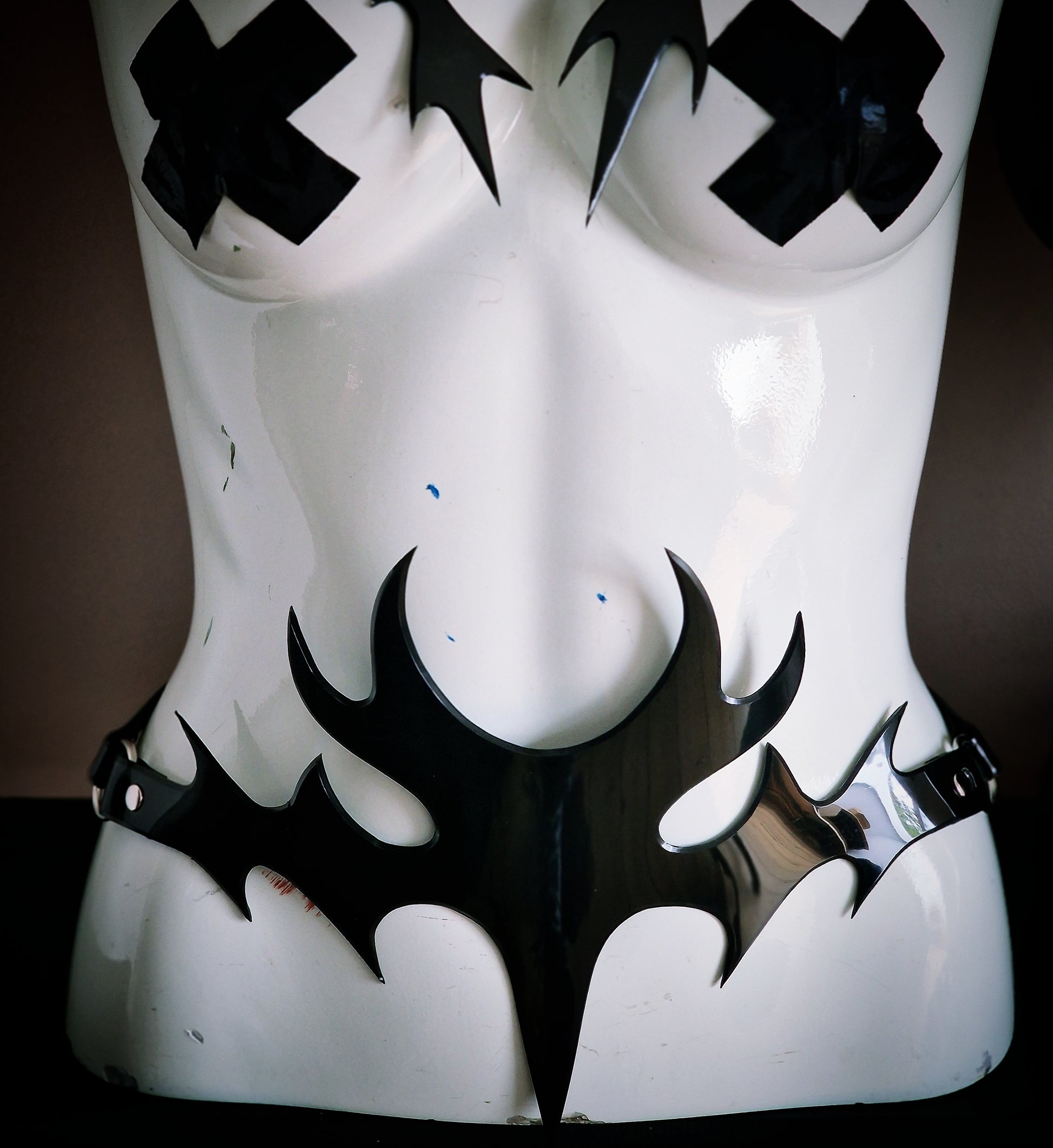 Intensify your style with our Stomach Tribal Belt, adorned with a bold spike design and sleek beveled edge.